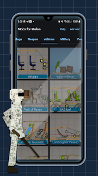 يرجى ملاحظة أن Mods for Melon ليس لعبة بذاتها ، ولكنه تطبيق غير رسمي مصمم لتحسين تجربة ألعاب الرمال الخاصة بك مع جلود وتعديلات رائعة. قم بتنزيل Mods for Melon اليوم وأشعل موجة من الإبداع والفرادة في لعبتك مع مجموعته الرائعة من الجلود والتعديلات.